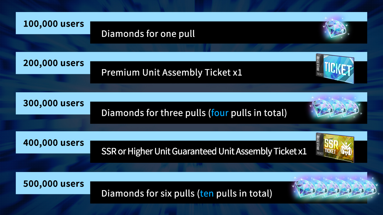 We are currently holding a pre-registration campaign! After the launch of service, everyone will receive various gifts (up to Upgrade Materials and Diamonds for ten pulls) according to the total number of pre-registered users.