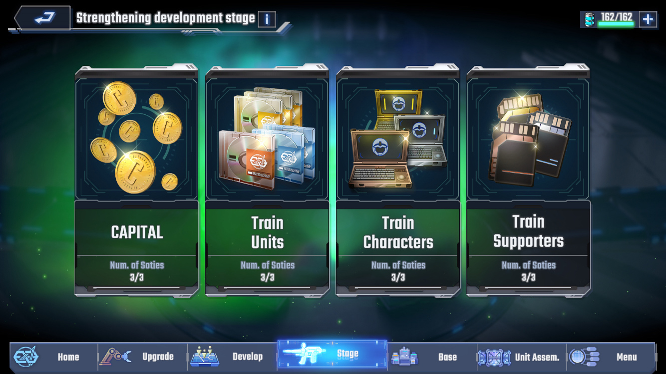 Upgrade stages where you can get tons of various upgrade materials and Capital,