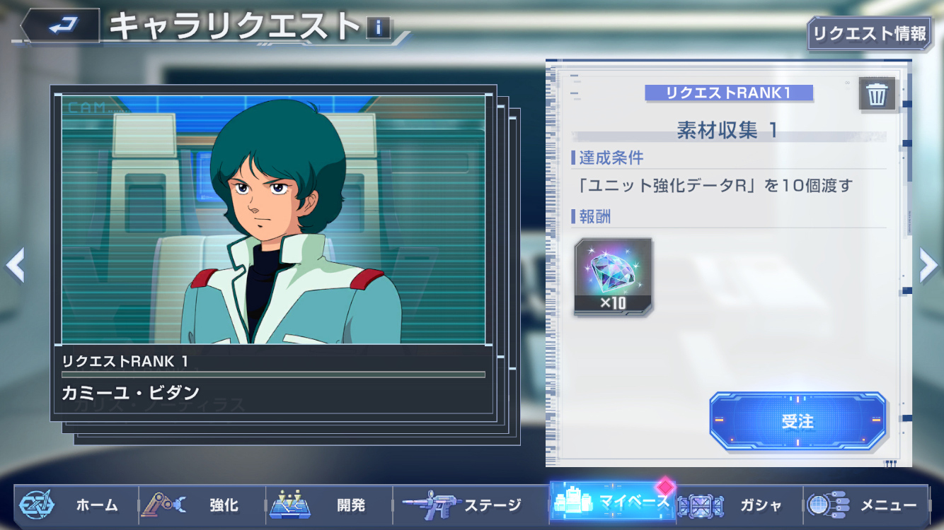 キャラリクエストではキャラクターから依頼を受け、達成すると報酬を得られます。