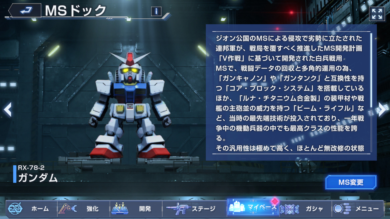その他、メインステージをクリアすることで獲得できるMSドックユニットを、飾って眺められる機能も追加しております。
