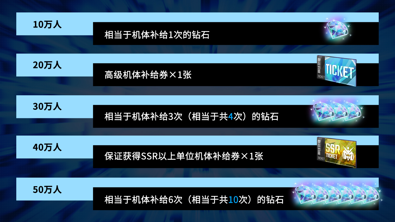 相当于高级机体补给10次的钻石、强化材料等对进行游戏大有帮助的道具也在其中,赶快完成事前登录参加活动吧!