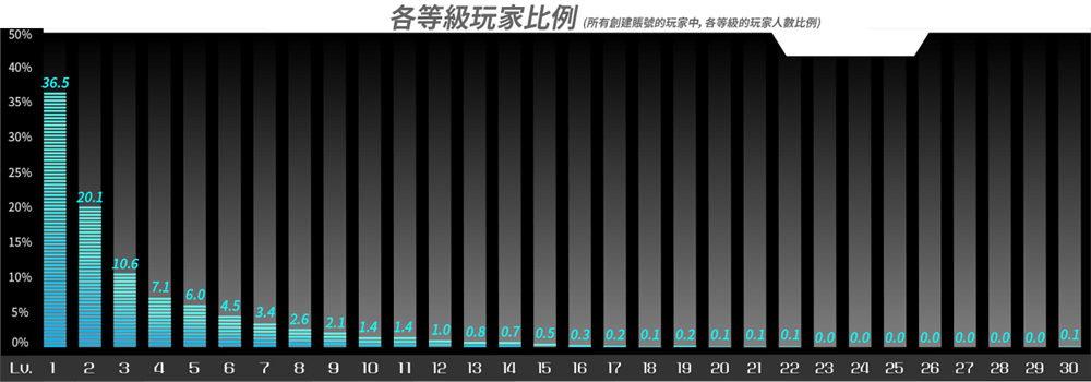由於劇情關卡為本次CBT的主要內容,各位都有確實遊玩,但關於強化素材關卡及永恆關卡,遊玩率卻不是很高。