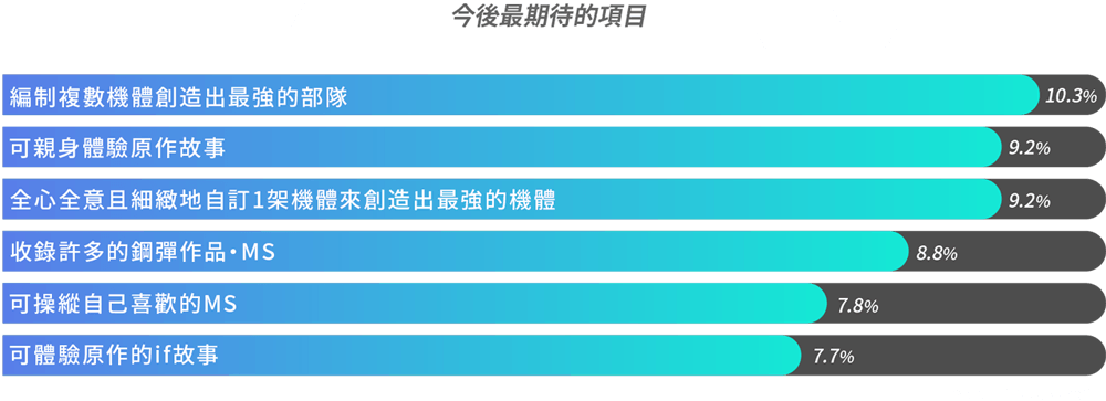 雖然得出有8成的玩家很滿意的結果,但我們也收到很多不滿和改善項目。接下來,將介紹各內容的滿意度。