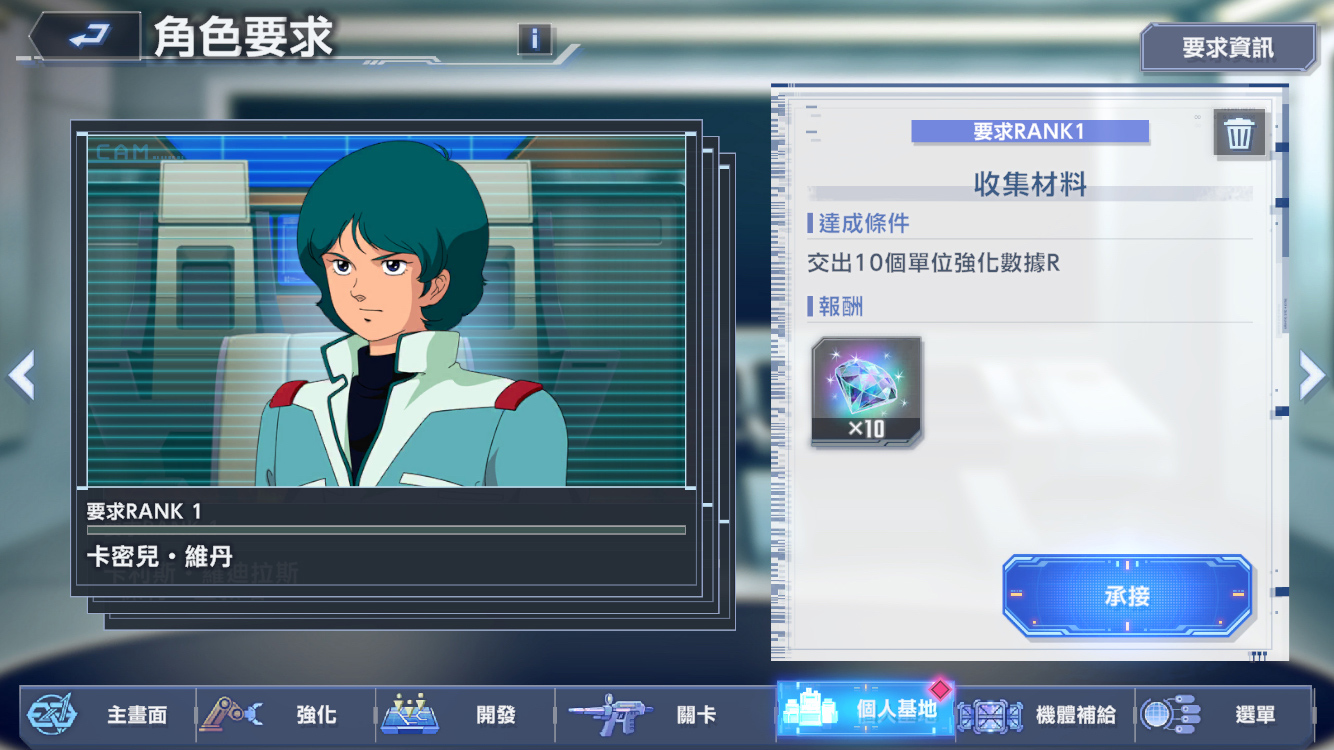 角色要求:完成角色們的委託,即可獲得報酬。